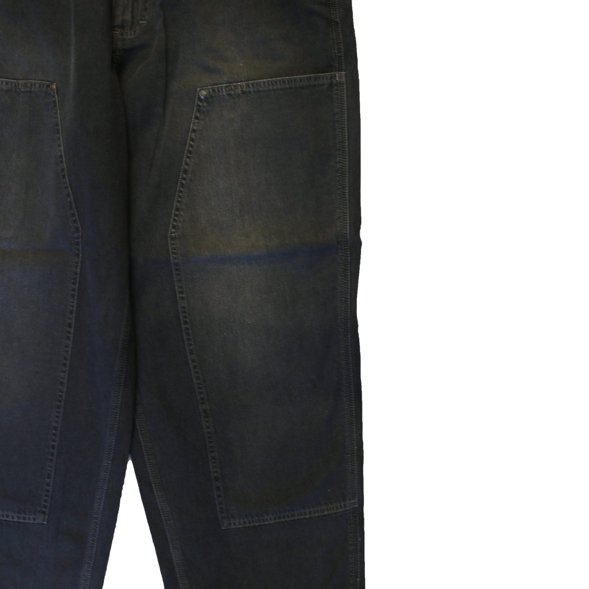リラックス感のあるシルエットが魅力のダブルニーデニムパンツ。